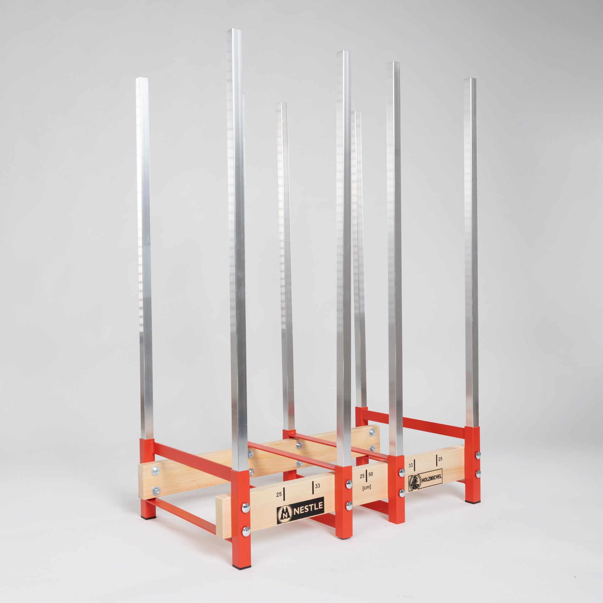 📏 Exakte Schnittführung: Markierungen für präzises Sägen bei 25, 33 oder 50 cm Scheitlängen.