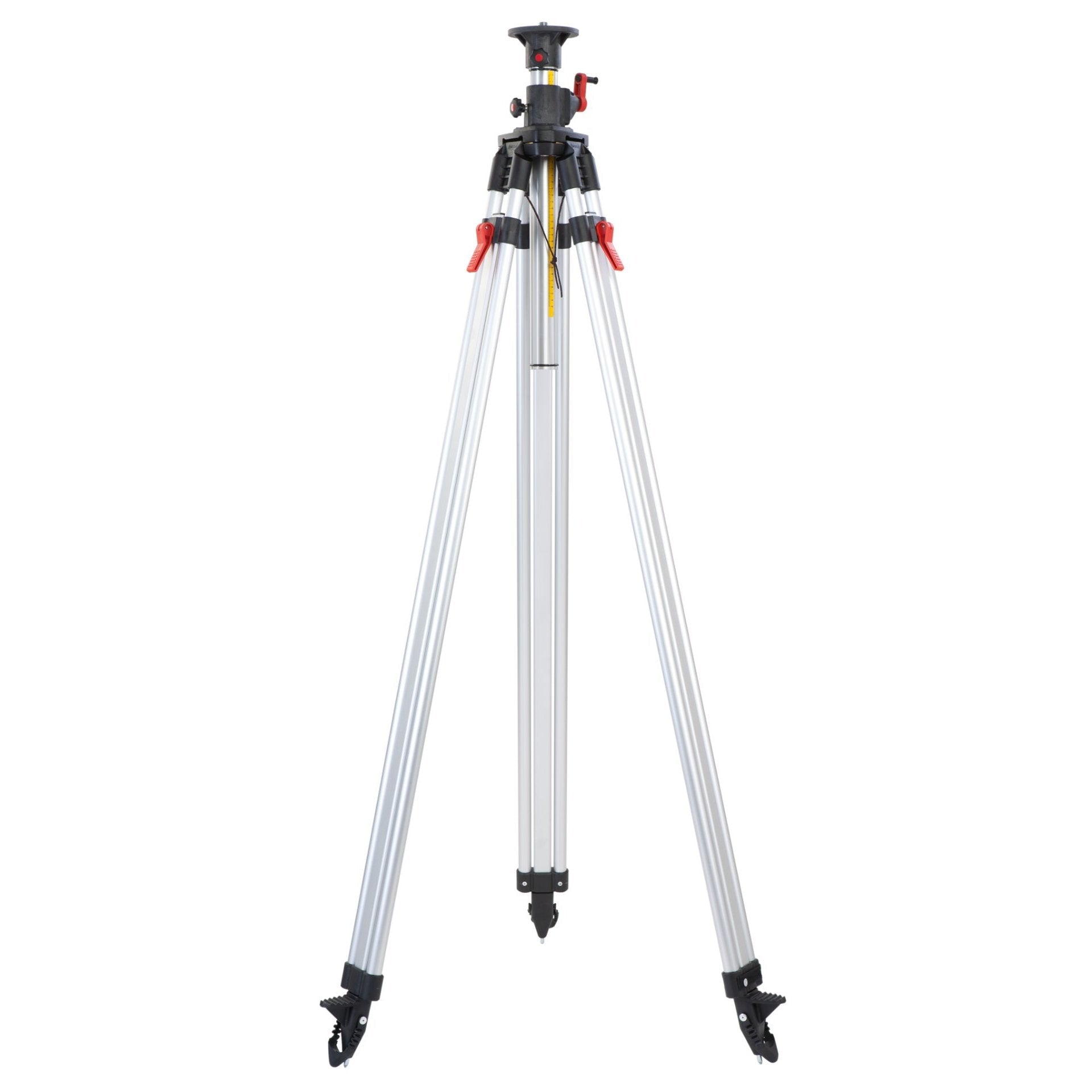 - Bei Bedarf können Gummikappen über die Spitzen der Stativbeine geklappt werden, was einen sicheren Aufbau auf glatten Oberflächen ermöglicht und zugleich empfindliche Böden wie Parkett oder Fliesen bei Innenarbeiten schont.