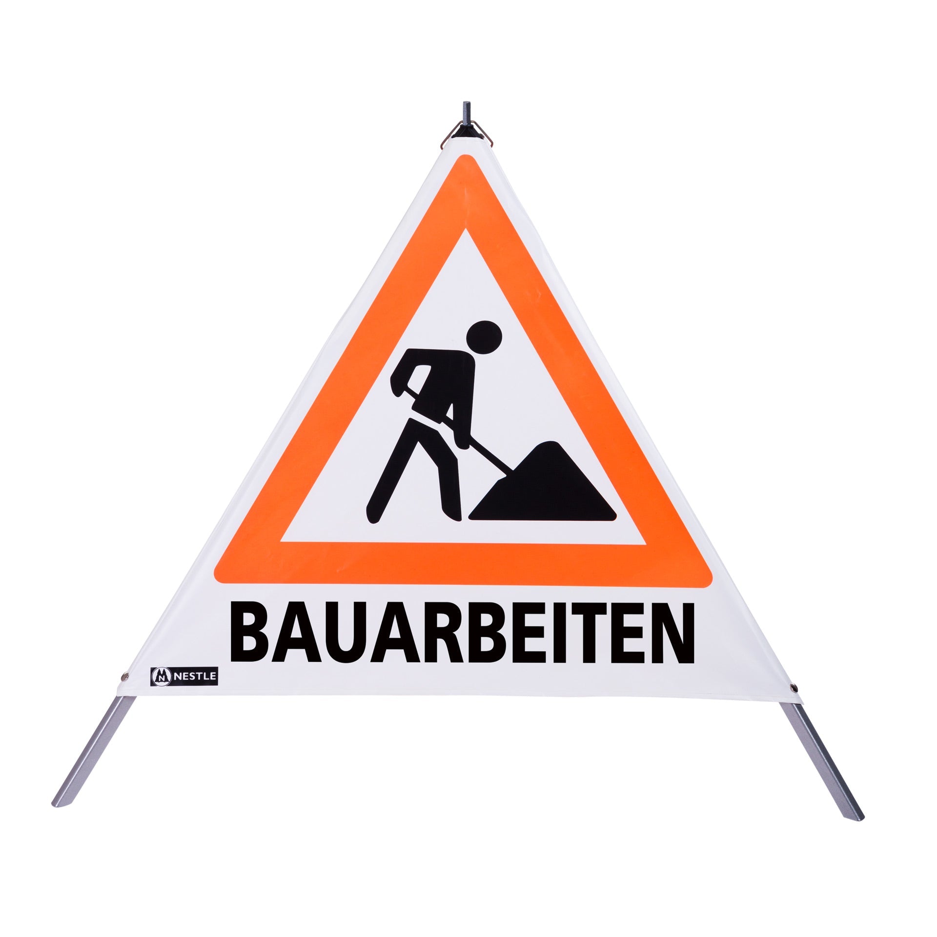 NESTLE Warnpyramide 90 cm, Schaufelmann (VZ123), weiß, schwere Ausführung mit Federmechanismus