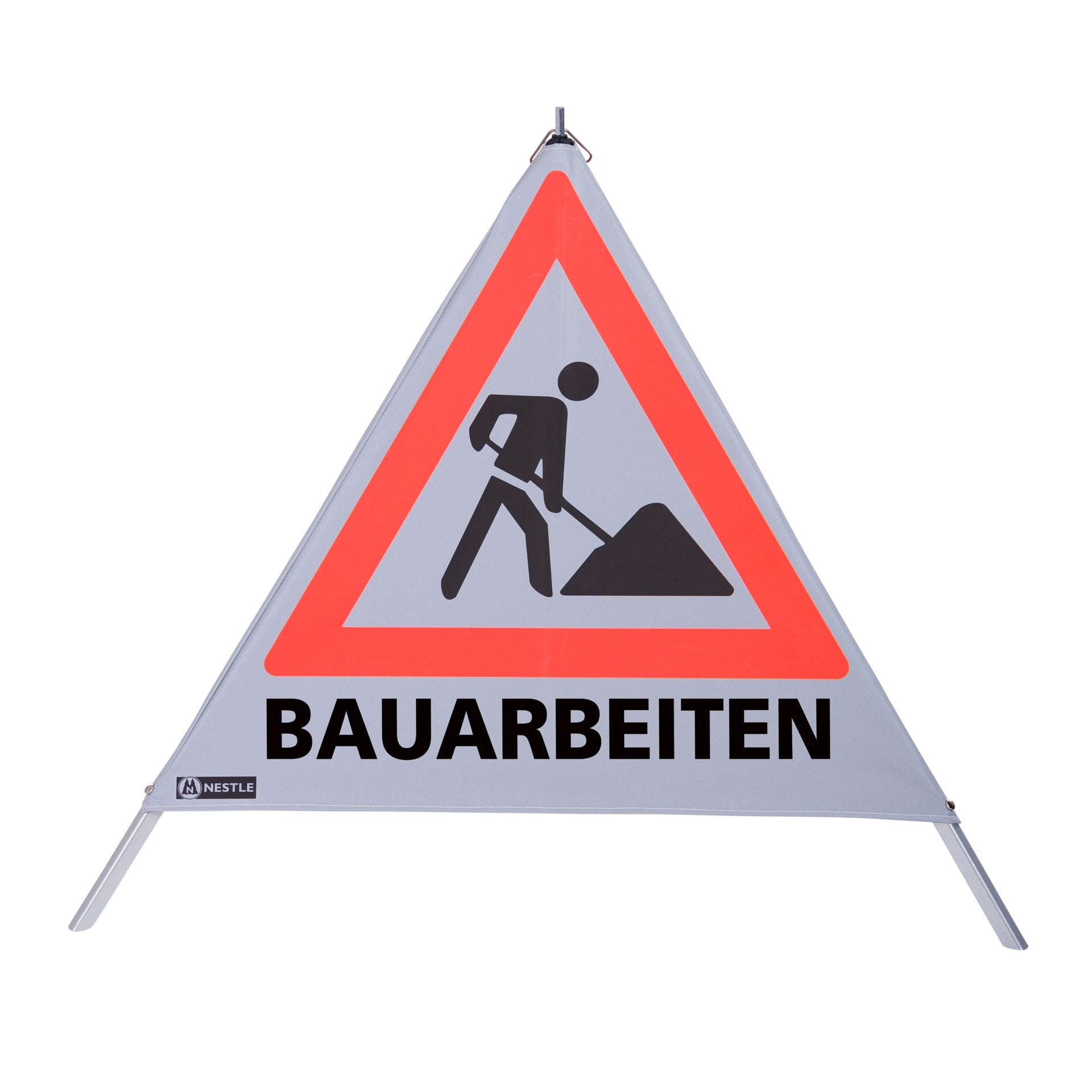 NESTLE Warnpyramide 90 cm, Schaufelmann (VZ123), retroreflektierend, schwere Ausführung mit Federmechanismus