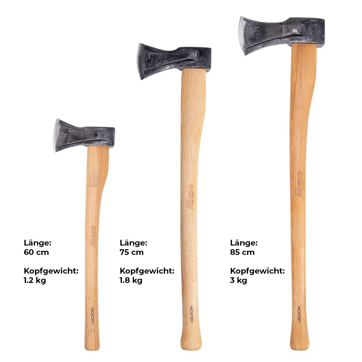 Je nach Länge und Gewicht – 60 cm / 1200 g, 75 cm / 1800 g oder 85 cm / 3000 g – passt sich die Spaltaxt deinen individuellen Anforderungen an.